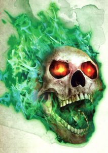 Besk, méfiant, tente de se souvenir de ce qu’il sait sur ce type de menace, mais le temps n’est pas à la réflexion et une énorme boule de feu explose dans la pièce, réduisant en poussière un zombi, blessant sévèrement le groupe et mettant à terre le gnome. Tandis que les deux guerriers font face à la marée de zombie et tente de les découper ou de les faire fuir, Vuldak relève le gnome. Le flame skull semble temporairement hors d’état de nuire une fois la bulle de silence jetée mais il se révèle encore très dangereux, comme le prouve les différents rayons de feu qu’il envoi, mettant à terre le prêtre et laissant les aventuriers dans une facheuse posture… car l’espoir ne viendra pas de la magie : les sorts de feu de Varhed semblent inopérants et le groupe ne compte pas d’archer très compétent pour espérer opposer une réelle défense efficace face au crane volant. Tentant le tout pour le tout, Besk s’élance donc par-dessus le fossé pour rejoindre le crâne et réussi, avec le soutien de Vuldak et Varhed à l’abattre pour de bon…