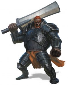 Alors même que le combats prend fin la cloche retentit à nouveau… Ce combat aussi n’était qu’une diversion ! Vuldak part en éclaireur et constate avec horreur que deux géants de feu sont en train de creuser dans le campement au nord de la grande place et qu’une demi-douzaine d’Orcs patrouillent sur des montures peu communes : des axe beaks. Rapidement repéré, le groupe se faire alors attaquer de toute part. Les Orcs fondent sur eux tandis que les géants s’amusent à les canarder avec des rochers qui font des dégâts incroyables dans les rangs des aventuriers et Varhed fait rapidement les frais de ce feu nourri en prenant un rocher qui le laisse pour mort. Jaycee le ranime et le gnome se jette alors sur les Orcs mais ne se met pas complètement à l’abris…*