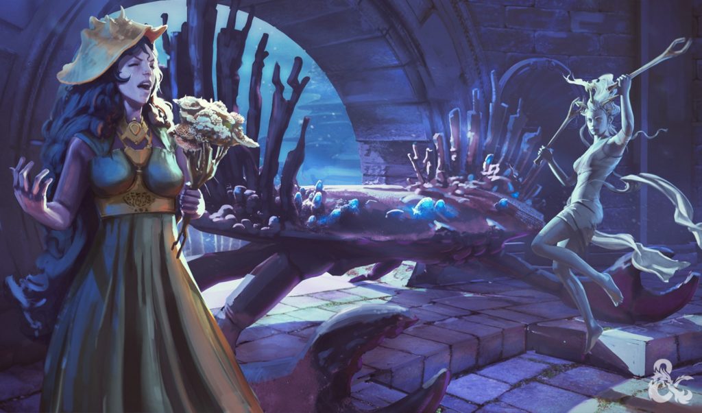 Une douce mélodie vient de l’escalier qui leur fait face, un lac iodé se trouve plus au sud. Ils sont désorientés… et après avoir inspectés les salles vides tout autour, ils se décident et prennent l’escalier pour arriver dans une grande chambre magnifique décorée, ou deux géantes des tempètes désarmées chantent pour une audience mélangeant géant de feu, de glace, de pierre et des nuages… Une sacrée assemblée, un nouveau défi ?