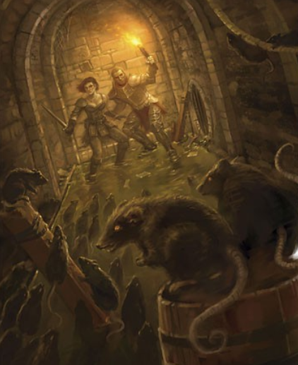 Volkarr s’en est allé, et nos aventuriers aussi. Après avoir pris le soin de payer son camarade d’une symbolique pièce d’or , le groupe prend la direction du quartier marchand où se situe la boutique Dandymops pour retrouver le halflin Losser. Mais sa boutique est fermée, il pleut des cordes et les compagnons cherchent donc une solution pour pénétrer dans la demeure sans alerter la foule. Cael tente d’abord d’attirer les badauds à l’autre bout de la rue, mais il attire surtout la garde qu’il parvient tout juste à convaincre de ne pas l’emmener au poste. Rivage décide alors d’utiliser sa magie pour camoufler le crochetage de Lyenna par une habile illusion. Une fois les lieux investis, une fouille méthodique leur révèle un passage vers les égouts depuis l’entrepôt du sous-sol.
