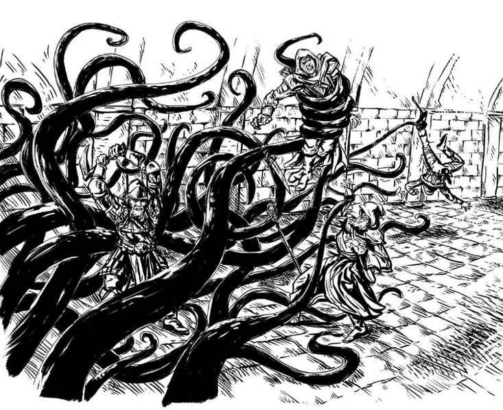 Une grande mêlée fait alors rage. Cael s’empare d’un tortionnaire parqué dans l’enceinte du campement et roule littéralement sur l’ennemi, tandis que Sheylne fait front, imprenable dans son armure et avec sa protection divine. Rivage n’est pas en reste en puisante allègrement dans son répertoire magique.
