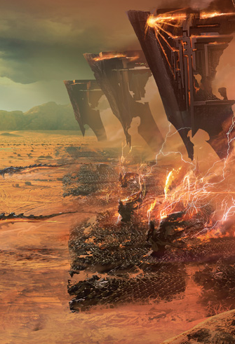 Réya, Laéral, tous les humains sont vivants mais hagards et à bout de souffle… tous s’accrochent dans le fol espoir que Sheylne, armée de l’épée de Zariel, puisse détruire le compagnon qui surplombe la ville et leur permette de s’enfuir.