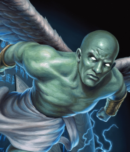 Décidant de partir sur cette option, la paladine céleste s’élance à l’assaut de l’affreuse boule électrique et usant de toute sa force, abat l’arme angélique et détruit la boule dans un fracas métallique qui résonne dans la ville et la plaine en dessous.